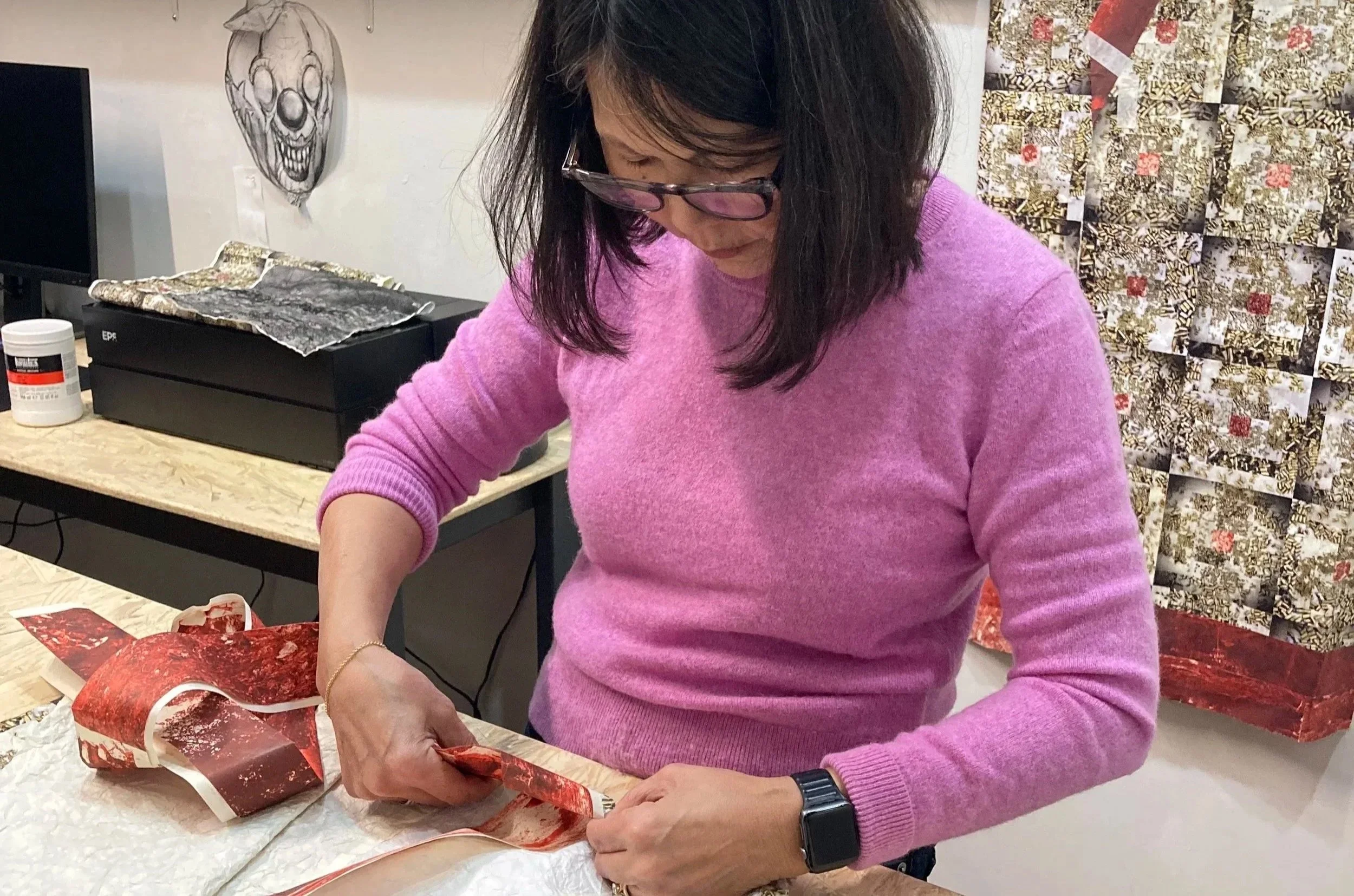Chieko Murasugi is a painter and multi-media artist who was born in Tokyo, raised in Toronto, and based in San Francisco for 20 years before moving to the NC Triangle in 2012. She holds degrees in Experimental Psychology (Ph.D., York U) and Studio Art (MFA, UNC-Chapel Hill). Her work has been exhibited nationally in galleries and museums, including participation in Coined in the South (Mint Museum), Works on Paper (Weatherspoon Art Museum), and Fiberart International (Contemporary Craft). She has been awarded residencies at Hambidge and Wildacres, and her paintings are included in the collections of Duke University and the Cities of Raleigh and Durham. Her practice is featured in Art of the State: Celebrating the Visual Art of North Carolina by Liza Roberts (UNC Press).